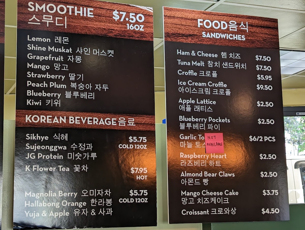 - Light Food and Snacks: Offers items like Tteokbokki, Ham & Cheese Sandwich, and other simple savory dishes suitable for a quick meal or snack.