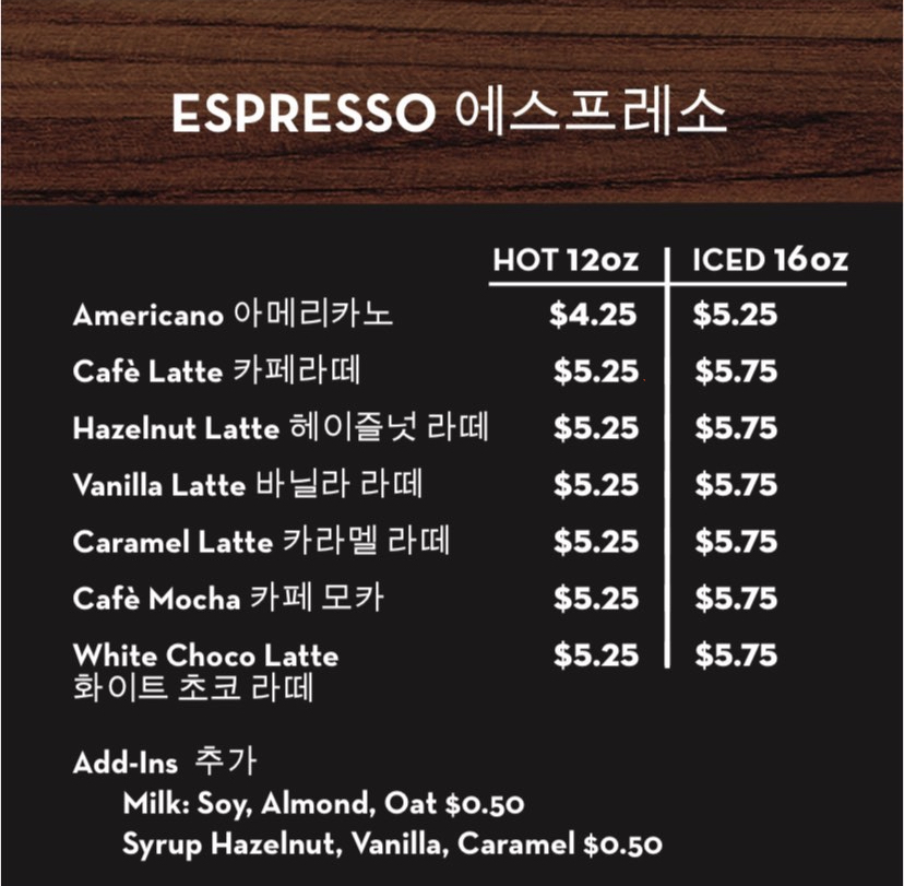 OHenry's Coffees Menu